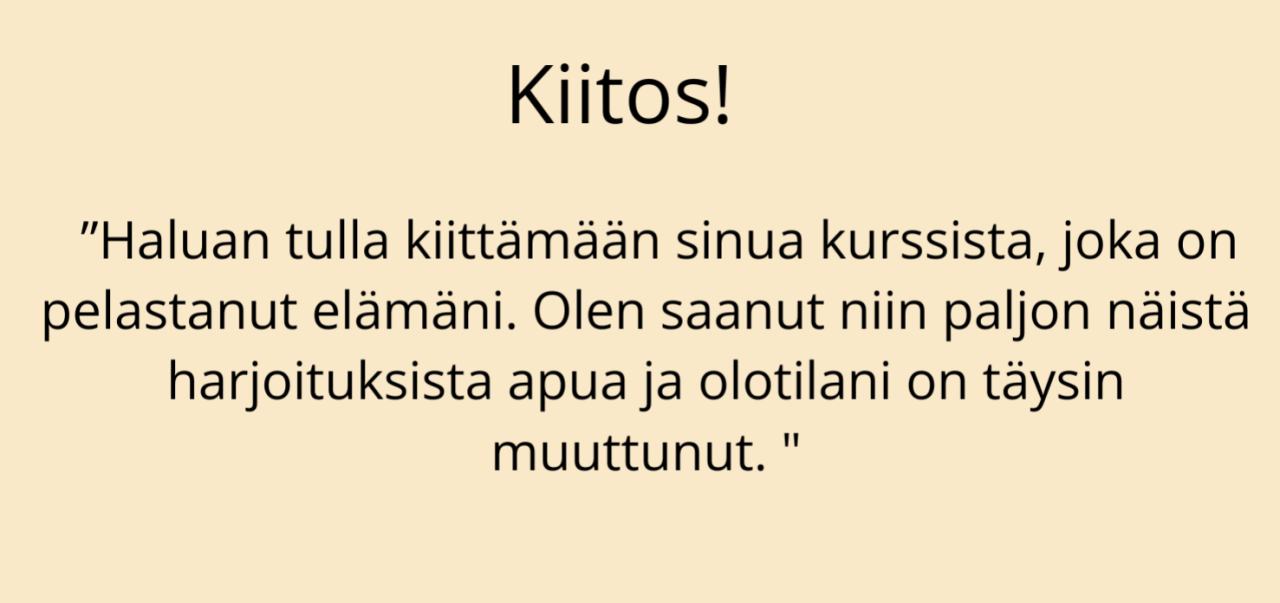 “Kiitollisuus myös tästä kurssista, niin hyvää ja tärkeää asiaa. olet ihana ammattilainen❣️”