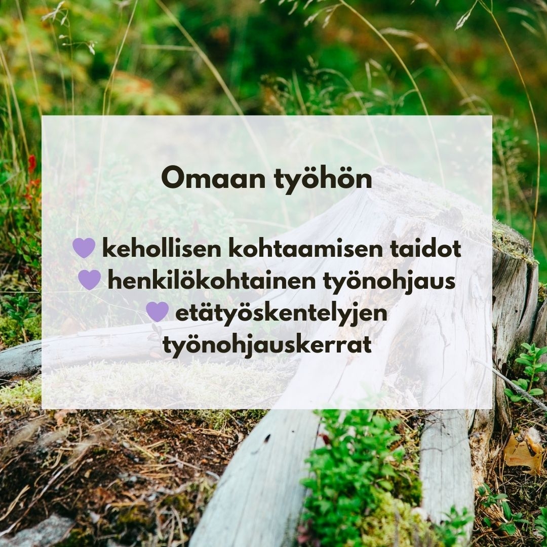 Koulutuksesta saat ammatilliseen työskentelyysi lisää syvyyttä, turvaa ja kehollista viisautta. Pääset vahvistamaan kehollisen kohtaamisen ja työskentelyn taitoja, jolloin työstäsi tulee vaikuttavampaa sekä asiakkaan hermoston tasapainoa ja kokonaisvaltaista hyvinvointia tukevaa. Koulutuksessa tätä kaikkea opetellaan ensin itsen kautta, jotta se myöhemmin välittyy myös asiakastyöhön. Koulutukseen sisältyy henkilökohtaista työnohjausta ja voit nostaa koulutuksen työnohjauskerroille sinulle tarpeellisia asioita.