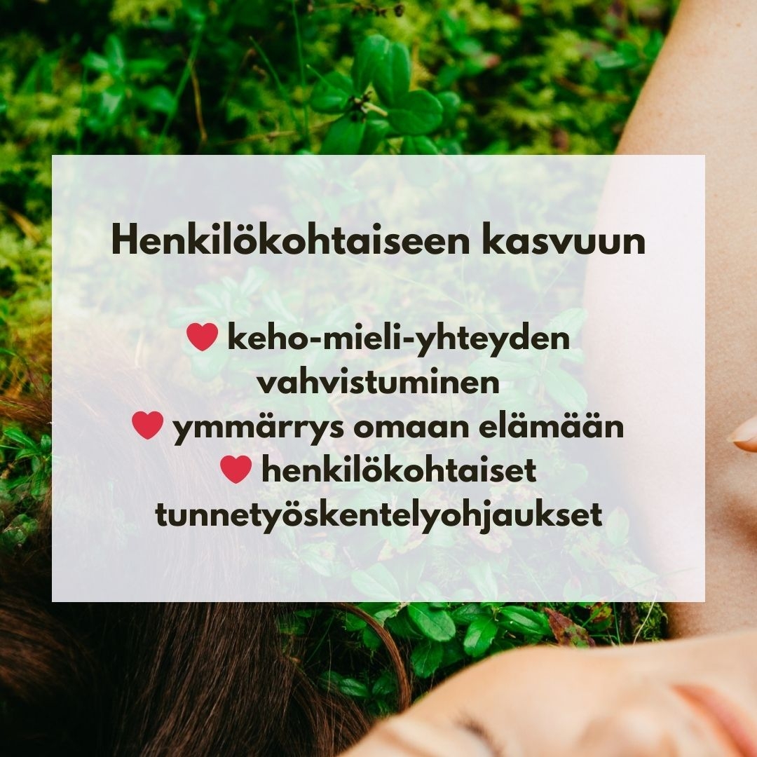 Voit valita koulutuksen myös silloin, kun haluat kokea syvällisen kasvumatkan omiin tunteisiin ja kehoon. Haluat vahvistaa omaa keho-mieli-yhteyttäsi sekä parantaa itsetuntemustasi. Keho ja mieli toimivat jatkuvassa vuorovaikutuksessa ja kun opit tuntemaan tämän kokonaisuuden sekä pääset tutkimaan sitä kehollisesti, avautuu polku syvään sisäiseen kasvuun. Teoria tukee ymmärrystä, ja todellinen muutos syntyy tämän henkilökohtaisen kokemisen kautta. Ohjausharjoittelu antaa paljon uutta tietoisuutta omaan elämään, kun eri tilanteita oppii koulutuksen aikana tarkastelemaan uudesta näkökulmasta, ohjaajan silmin. Koulutukseen sisältyy myös henkilökohtaista tunnetyöskentelyohjausta. Katso vuosikoulutukseen osallistuneiden kokemuksia henkilökohtaisesta kasvusta täältä.